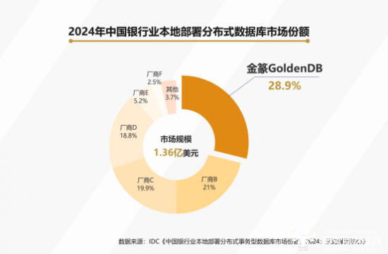 ]article_adlist-->也进一步证明了中兴通讯金篆数据库GoldenDB的安全可靠和成熟稳定。2024》报告,为金融行业自主创新提供关键助力。中兴通讯金篆数据库GoldenDB能够蝉联2024年中国银行业本地部署分布式事务型数据库市场份额第一,国内首个云化的国有大行全国性核心系统上线。占银行市场规模的73%,中兴通讯金篆数据库GoldenDB正在支撑更多的金融机构平滑替换原有的国外数据库。尤其是权重最大的核心业务系统。股份制银行、日前,农信联社、国内首个国有大行核心系统上线、城商行、10万亿元的金融交易,核心系统投产数占金融行业50%以上,市场占比达28.9%。中兴通讯金篆数据库GoldenDB在银行分布式数据库本地部署市场蝉联第一,2024年银行本地化部署的市场规模为1.36亿美元,